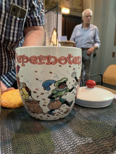 Op de laatste zaterdag van augustus, en echt, de wind waaide door de bomen, waren wij van de Sint-Nicolaas Genootschap Nederland te gast in de H. Nicolaaskerk in jullie dorp.Eerst zullen we ons voorstellen, de Sint Nicolaasgenootschap Nederland (SNG Nederland) is een vereniging die zich actief inzet op de religieuze, culturele, historische en maatschappelijke achtergronden van het Sinterklaasfeest. Wij organiseren ieder jaar verschillende activiteiten zoals het bezoeken van de Nicolaaskerken en musea. Wij werden opgewacht door twee jullie welbekende personen. Thea was de zolder op gegaan en had de pepernotenpot alvast opgezocht en voor ons gevuld. Ook voor ons waren dat de eerste kruidnootjes van het jaar. Tijdens het koffie drinken was daar Wim één man met wit haar, met een prachtige Sinterklaas Stem en het postuur, waar zo de mantel bij omgehangen kon worden en de staf in de hand gedrukt. Wim vertelde over de geschiedenis van het kerkgebouw. Van hoe het toen begon naar hoe het nu is. Hij had een publiek dat van alles wilde weten en zo ontstond een geanimeerd gesprek. Eén van ons is zeer geïnteresseerd in de kerkstempel, een ander in het materiaal waar het Sint-Nicolaas beeld van gemaakt is, en de oude doopvont achter in de kerk en de glas in lood ramen. Ook op het kerkhof viel het oude kerkhofkruis op. Het kruis en de oude zerken aan de zijkant van de kerk behoorde vroeger bij de schuurkerk. Na 2 uur verlieten wij Lierderholthuis om op weg te gaan naar het sinterklaasmuseum in Neede. Het was supergezellig en zeer interessant. Daarvoor dank.