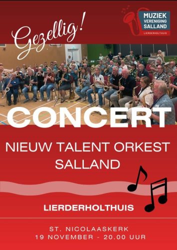 Het Nieuw Talent Orkest werkt toe naar de uitvoering op 19 november. Gedurende een 10-tal lessen heeft deze groep een enorme groei doorgemaakt die ze graag aan iedereen laten horen. Iedereen is welkom op woensdag 19 november om 20.00 uur in de Sint Nicolaaskerk in Lierderholthuis (Kerkslagen 1) voor concert.
